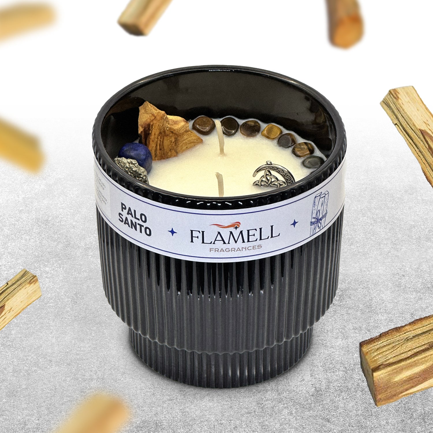 Esta fragancia combina la pureza y el misticismo del Palo Santo con el toque fresco de la naranja y la suavidad de los lirios, creando un ambiente cálido y sereno.