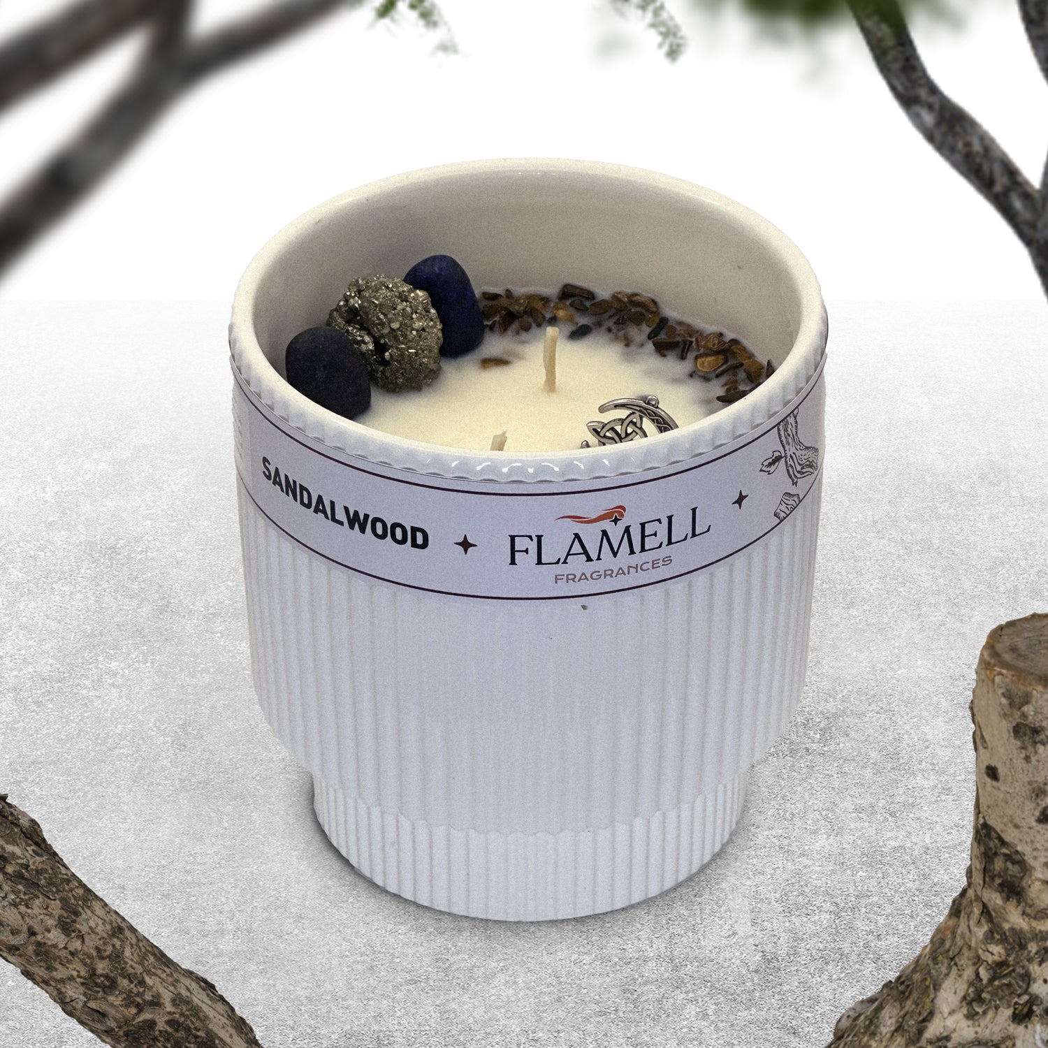 En aroma Sandalwood, la calidez de la madera de sándalo se entrelaza con las notas profundas y envolventes del ámbar, el carácter terroso del cuero y un delicado toque floral. Este aroma evoca una sensación de elegancia y serenidad, como un refugio cálido en medio de la naturaleza.