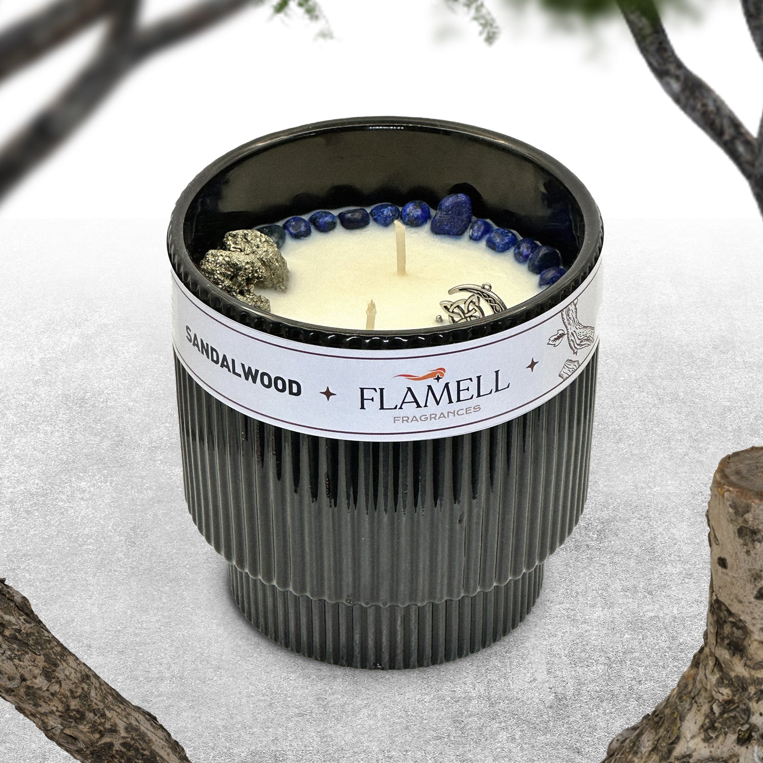 En aroma Sandalwood, la calidez de la madera de sándalo se entrelaza con las notas profundas y envolventes del ámbar, el carácter terroso del cuero y un delicado toque floral. Este aroma evoca una sensación de elegancia y serenidad, como un refugio cálido en medio de la naturaleza.
